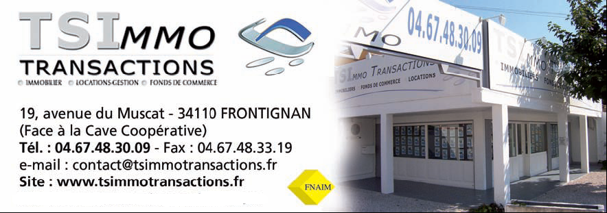 Forte d'une équipe de professionnels qui vous sont entièrement dédiés et dévoués, idéalement placée sur l'artère la plus passante de Frontignan, Face à la coopérative du Muscat, TSIMMO TRANSACTIONS vous apporte d'innombrables +